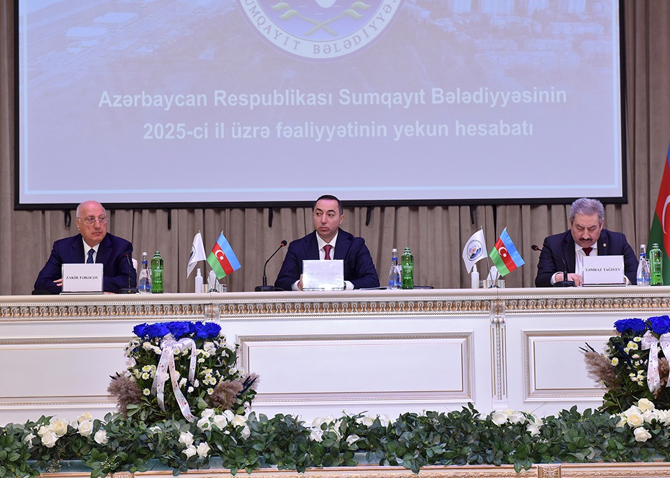 Tədbirdə Sumqayıt Bələdiyyəsinin sədri Adil Xudatatov hesabat məruzəsi ilə çıxış edərək bildirib ki, 2025-ci il Sumqayıt Bələdiyyəsi üçün təkcə görülən işlərin deyil, eyni zamanda yeni idarəetmə yanaşmasının və sistemli fəaliyyətin nəticələrinin aydın şəkildə göründüyü bir il olub.