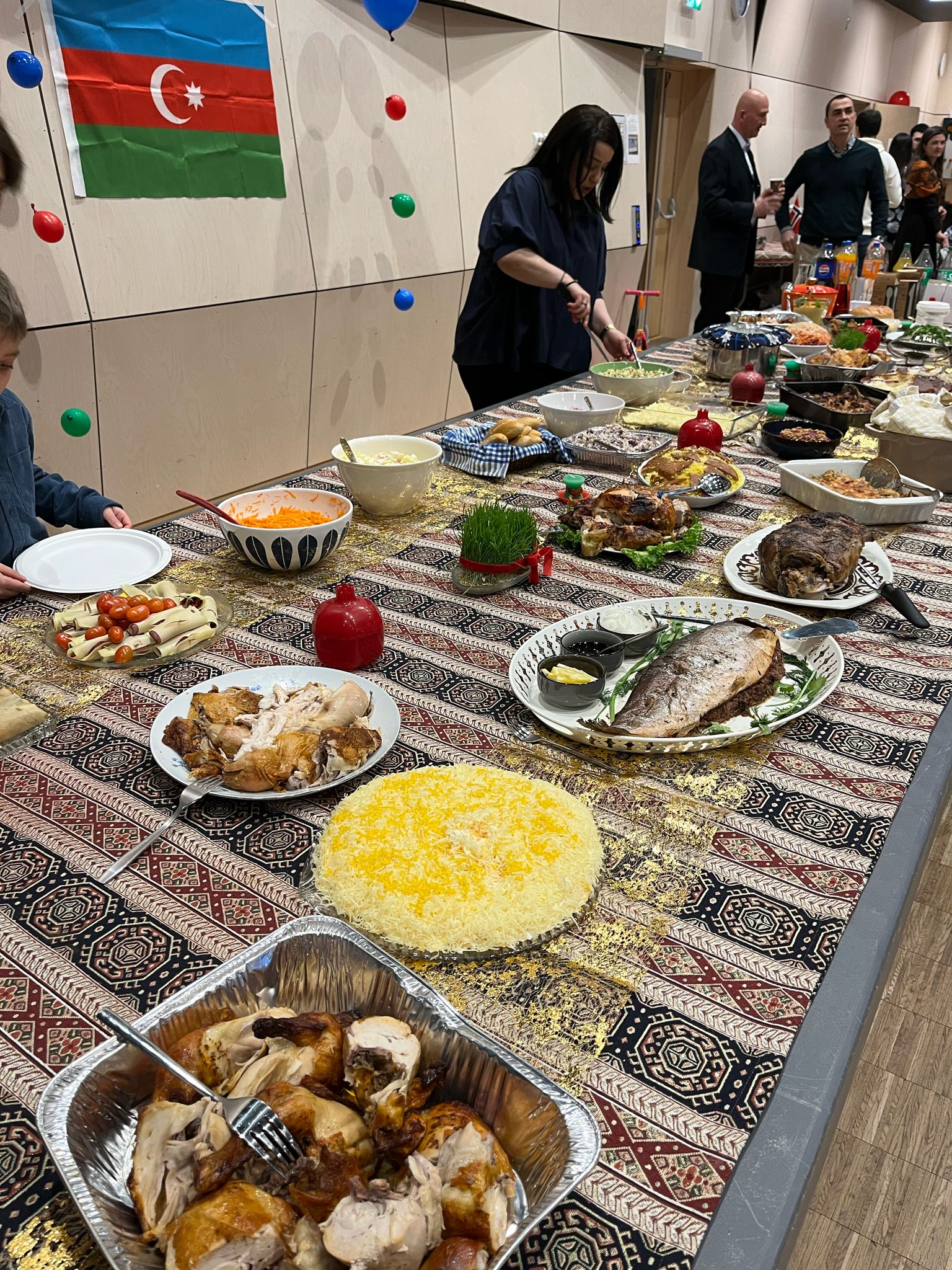 Tədbirin rəsmi hissəsi başa çatdıqdan sonra iştirakçılara Stavangerdə yaşayan xanımlarımızın bişirdiyi milli Azərbaycan yeməkləri və şirniyyatları, musiqili və əyləncəli bayram proqramı təqdim olunub. Həmçinin bayram səhnəcikləri, milli rəqslər və digər millli adət-ənənələr nümayiş etdirilib, şən mahnılar səsləndiriblər. Novruz bayramının adət-ənənələrinə sadiq qalaraq, qonaqlar yumurta döyüşdürüb, tonqal üzərindən tullanıblar.