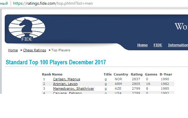 Reytinq cədvəlinə norveçli Maqnus Karlsen (2837) başçılıq edir.(